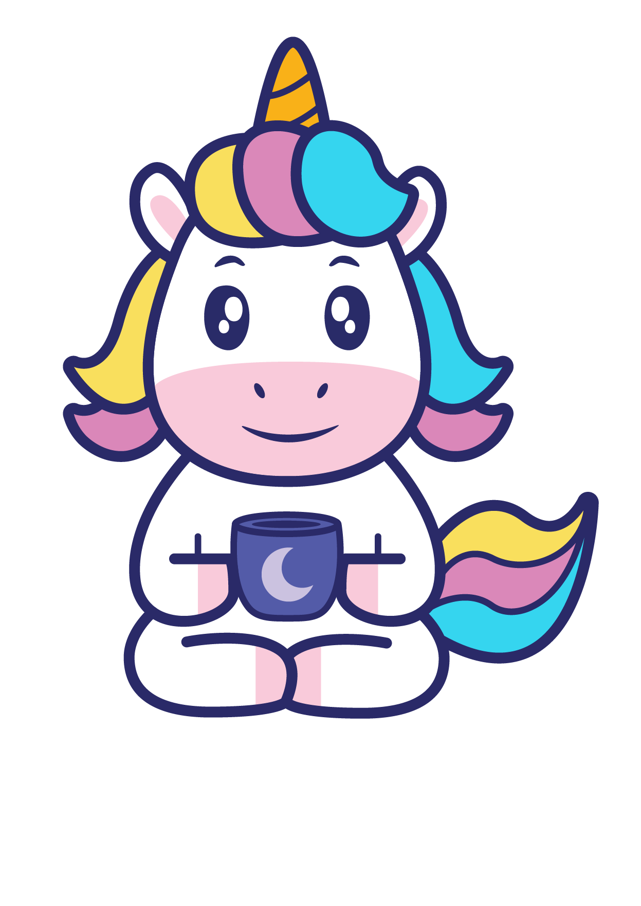 The creation of the cutest unicorn ever came from Shawn of Runnels & Rourk (who I was also working with at the time for branding). He was able to make the perfect unicorn not just in the main position you see frequently but also doing different things so she flows across my business. She’s on my burnout bingo card (which Laura created), featured in my Quarterly Webinars on Restorative Sleep and my pregnancy and postpartum herbal product line plus Unicorn Dreams tea.